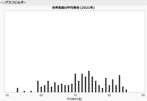 統計ソフト「JMP(ジャンプ)」で、シンプルだけど有用なグラフ 「ドットプロット」を作成し、世界の平均寿命分布を可視化しました。