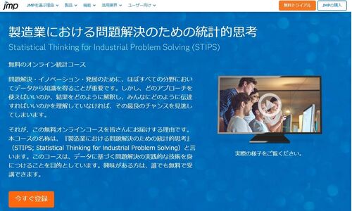 統計学習に最適!無料なのに約30hのボリューム。著名企業でも活用される、統計ソフト「JMP(ジャンプ)」が開発したオンライン統計コース「STIPS」。