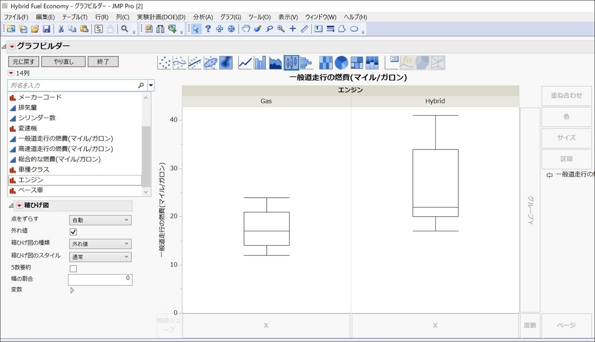 ■さまざまなカスタマイズが可能なJMPの「箱ひげ図」
