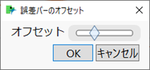 このとき、JMPでは「グラフビルダー」の左上にある赤い三角ボタンから、 [誤差バーのオフセット] を選択することにより、以下のダイアログボックスでオフセットを指定できます。オフセットの値を大きくするほど、ずらす幅が大きくなります。